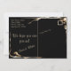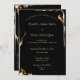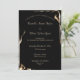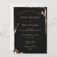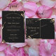 O texto Dourado em duas fontes contrastantes é contra um fundo preto que apresenta o fofocinho sábio ouro chamas oscilando em torno de cantos alternativos. O texto está alinhado para que você possa digitar suas informações pessoais sobre o evento de casamento. Os nomes dos casais e algumas outras linhas estão em uma fonte elegante de script, enquanto o restante é uma fonte compacta sans serif. Ela apresenta a frase popular "Junto com os pais", mas pode ser alterada como você prefere.