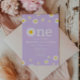 Convites Chamomile Flower Watercolor Purple Primeiro Aniver