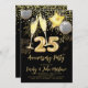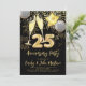 Um convite de aniversário de 25 anos moderno e glamoroso com um brinde de champanhe, balões, confetes dourados, fogos de artifício dourados em um fundo preto com tipo de letra moderno e elegante. Balões dourados em forma do número 25. Estilo chamativo, ousado e cintilante.