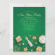Champanhe Confetti Dourado Convite de festas de Ano Novo Verde. Este elegante convite de festas de Ano Novo apresenta um confete dourado com vários elementos de Ano Novo. Saúde ao ano novo! Personalize este design personalizado com os seus próprios detalhes.
