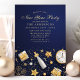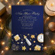 Champagne Confetti Dourado Marinho Azul de Ano Novo. Este elegante convite de festas de Ano Novo apresenta um confete dourado com vários elementos de Ano Novo. Saúde ao ano novo! Personalize este design personalizado com os seus próprios detalhes.