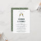 Este chá de panela pré-disquete moderno apresenta duas flautas de champanhe desenhadas à mão com arcos bonitos cheios de champanhe dourado falso. Os detalhes do seu chá de panela aparecem na tipografia serif do na moda, acentuada por caligrafia de estilo manuscrito, em azul marinho. Estes incríveis convites revertem para um padrão floral delicado em verde sábio com bonito flores azuis claras e brancas.