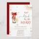 Watercolor champagne glass and bottle with a red bow and gold sparkle on a white background. These beautiful Christmas invitations are perfect for Christmas dinner party invitations, holiday gift exchange invitations, Christmas fundraisers, holiday ball invitations, and other events held during the month of December. Just use the template fields to add your own event information.
