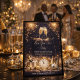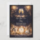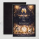 New Year celebration design featuring deep navy and gold tones with fireworks, champagne flutes, and sparkling light effects. Detailed accents include a midnight clock, confetti, and party decor. Script headline with refined layout suited for hosting an upscale evening countdown gathering.