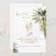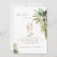 Champagne toast. Gold text. Invitation. Tropical Foliage. Watercolor.