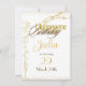Celebre em estilo com este convite elegante e festivo perfeito para o "aniversário do champanhe" de alguém. Esse convite maravilhosamente desenhado apresenta uma imagem de uma garrafa de champanhe sendo lançada, com bolhas espumantes de champanhe em tons de ouro radiantes que acrescentam um toque de glamour à ocasião. O design dá o tom para uma celebração sofisticada e comovente que seus hóspedes não vão querer perder. Faça um brinde a um aniversário de marco no mais na moda com este convite chic & classy. Saúde a uma celebração memorável!