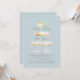 Torre de champanhe. Dourado texto. Convite. Chá de panela Borracha. Fundo azul gelado.