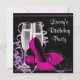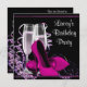Champanhe rosa púrpura e alto salta mulheres convite de festas rosa-quente. Este convite de aniversário rosa-quente é facilmente personalizado para o seu partido ou evento, simplesmente escolhendo o botão "Personalizar!" para começar a adicionar detalhes do evento, estilo de fonte, tamanho de fonte e cor e texto. Observe que todos os topos do bolo, adesivos, cartões e designs de convite que você encontrará no Zazzle são gráficos impressos sem joias reais, arcos, levantados, gravados ou adicionados de peças ou peças. com
