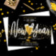 Convites Champanhe de Ano Novo Dourado Confetti Negro