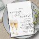 Convites de brunch de aniversário elegantes e modernos, com ilustração aquosa de copos de champanhe. Fonte preta simples sobre fundo branco, com um padrão rosa pálido no verso.