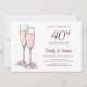 Levantem um copo conosco enquanto brindamos ao nosso 40º aniversário de casamento. Este convite elegante, com dois óculos de champanhe cor-de-rosa, é a forma perfeita de convidar seus amigos e família a se juntarem à alegria, riso e lembranças queridas. Você pode adicionar facilmente todos os detalhes necessários ao texto personalizável. Escolha entre vários tipos de papel e estilos de canto para tornar seus convites exclusivos. Além disso, você tem a opção de baixar o convite se preferir um formato digital.