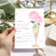 Convites Champanhe Dourado com Chá de panela Hydrangea rosa