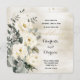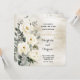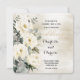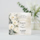 Um convite de casamento elegante, com rosas de Desdêmona brancos e cremosos, sobre um fundo de ouro de champanhe macio e um talão de ouro.