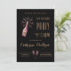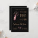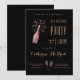 Celebre seu aniversário de 70, em estilo, com este convite de aniversário preto e ouro. Uma aquarela de uma garrafa de champanhe cor-de-rosa aberta tem um rótulo que pode ser personalizado com seu ano de nascimento ou iniciais, este ano ou outro texto com até 4 letras. A tipografia elegante aparece por todo o lado, e o seu nome é definido numa escrita bonito. Os detalhes do local e da festa são separados por uma aquarela de dois copos de champanhe cheios de champanhe rosado borbulhante. Você pode personalizar o aniversário para outro ano, se quiser.