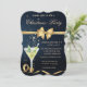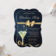 Um convite elegante para festas de férias com arco de ouro e vidro de champanhe em fundo azul marinho. Estes belos convites de Natal são perfeitos para convites de festas de janto de Natal, convites para troca de presentes de Natal, angariadores de fundos de Natal, convites para bolas de férias e outros eventos realizados durante o mês de dezembro. Use apenas os campos modelo para adicionar suas próprias informações de evento.