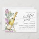 convites de festas de aniversários adultos bonito com uma ilustração aquosa de uma garrafa de champanhe com flores roxas. O texto "festa de aniversário" é escrito em script, para um estilo divertido mas sofisticado. (*O texto do script não pode ser editado porque não faz parte do modelo). O verso é um verde-claro coordenador. (As cores de fundo podem ser alteradas, se desejado, usando a ferramenta design).