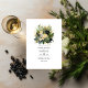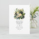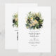 Champanhe, verde e convite para o casamento floral preto. O código QR no verso direciona para o seu local de casamento onde o pessoas pode aprender mais e rsvp.