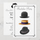 Este convite fashion define o clima e indica que é uma noite elegante fora de casa, em vez de uma festa qualquer. Muito masculino, muito elegante. Apresenta um elegante chapéu-coco preto, um fedora trilby preto com faixa cinza e um chapéu de palha com faixa preta com uma borda preta simples em estilo art déco. No verso está outro chapéu fedora com uma faixa branca. Basta preencher as áreas com as informações da sua festa e fazer as alterações necessárias. -- Veja descontes para compras em grandes quantidades. Envelopes incluídos.