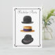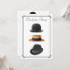 Este convite elegante vai definir o clima e vai indicar que é uma noite estilosa na cidade, em vez de uma festa qualquer. Muito masculino, muito elegante. Apresenta um chapéu-coco preto elegante, um fedora trilby preto com faixa cinza e um chapéu de palha com faixa preta com uma borda preta simples em art déco. No verso está outro chapéu fedora com uma faixa branca. Basta preencher as áreas com as informações da sua festa e fazer as alterações necessárias. -- Veja descontos para compras em quantidade. Envelopes incluídos.