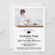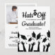 Comemore seu formando escolar de veterinária com este convite/anúncio de festa de formatura com Bonés de formatura jogados no ar e a foto do veterinário no verso, juntamente com os detalhes da festa de formatura. O convite perfeito para celebrar todas as suas realizações.