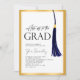 Convide os seus entes queridos a comemorarem a sua festa de formatura com este convite limpo e minimalista que inclui a tipografia "Chapéu ao Formando" e "Formando", a tassel de graduação azul e dourada, o quadro de borda dourada e a fotografia personalizável. Personalize o convite ao seu gosto.