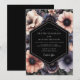 This dramatic design sets a sophisticated tone for your nuptials. Luminous painterly anemones in soft blush and pale apricot emerge from a deep charcoal background. Subtle accents of slate blue botanicals add depth to the moody floral arrangement, perfect for a modern, artful union with a touch of dark romance.