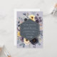 This elegant design features a stunning arrangement of moody, dark charcoal and deep amethyst anemones. Bright pops of buttery yellow blossoms and soft cream flowers provide a beautiful contrast. The entire bouquet is set against a pale lavender-grey backdrop, surrounded by dusty green foliage for a romantic, artistic feel.
