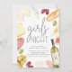 Convide amigos para uma noite de saída (ou entrada!) de garotas de vinho e queijo com estes convites casuais de chic. A design apresenta detalhes de celebração em caracteres modernos, rodeados de ilustrações de queijos, carnes, pão e fruta. Personalize a garrafa de vinho com uma inicial para um toque especial de acabamento.