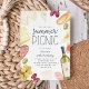Convide convidados para uma festa de piquenique de verão com estes convites casuais de chic. A design apresenta detalhes de celebração em caracteres modernos, rodeados de ilustrações de queijos, carnes, pão e fruta. Personalizar para qualquer tipo de evento, como aniversários, aposentadorias ou festas de limpeza doméstica. Personalize a garrafa de vinho com uma inicial para um toque especial de acabamento.