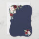Design de cartão elegante, com cor d'água, delicada burgundy, blush, flores de ameixa, falso quadro de ouro, divisor floral, sobre fundo branco. Nas costas buquês de flores brancas sobre fundo azul-da-noite. Use a ferramenta Personalizar para adicionar suas informações, alterar fontes, cores da fonte. Para obter itens correspondentes, visite minha Coleção de Flores do Burgundy Blush.
