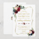 Design de cartão elegante com maravilhosas merlot de aquarela e buquês de flores azuis marinhos, faux gold frame, divisor floral, belos guiões de escrita manual e fontes especiais. Pode ser uma escolha excelente para qualquer casamento da temporada, especialmente para casamentos outono e inverno. Use a ferramenta Personalizar para adicionar suas informações e fazer alterações. Para obter itens correspondentes, visite minha Coleção Floral Azul Merlot & Marinho.