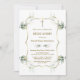 Elegant card design featuring watercolour delicate green leaves, a faux gold cross and frame, leafy divider. Use Personalise tool to add your info. More ideas in my Dedication Collection.