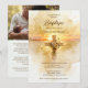 This design features a charming cross decorated with delicate wildflowers in watercolor effect, creating a soft composition full of natural beauty. The floral details blend lightly into the cross, forming a harmonious set that conveys delicacy and visual balance. The gold glitter effect adds a luminous and elegant touch that enhances the design with a refined sparkle. The atmosphere conveyed by the design is ethereal and elegant, where the softness of the watercolor effect and the golden shimmer combine to create a delicate, charming, and visually very special invitation.