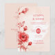 Charming Delicate Flowers Juicy Red & Pinky Pink Editorial Wedding Invitation with Back QR Code.