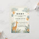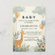 Invite friends and family to celebrate your little one with this charming baby shower invitation. Featuring a cute cartoon giraffe, soft watercolor clouds, pastel balloons, and delicate floral accents in muted greens and peaches, this elegant vertical design creates a warm and whimsical vibe. Perfect for dinner and cocktails celebrations, this card brings joy and sophistication to your special event.
