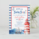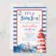 Convites Charming Striped Blue Red Nautical Ahoy Baby Boy