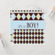 Convites Charmoso Argyle Azul Bebê É um Menino Chás de Bebê