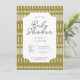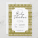 O convite para chás de fraldas geométricos em uma paleta de cores verde e bege. ABORDAGEM: convite para chás de stripe, marcação eletrônica de tribo, convite de festas para bebês, cartão linear fofo, convite de festas neutro de gênero, apresentação simples para bebês, convite geométrico para bebês