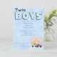 É o Twins! Adorável convite de chá de fraldas para gêmeos gêmeos. Preencha os detalhes e está tudo pronto. O fundo azul de bebê, um banner dos Twin Boys e bebês gêmeos brincando com caminhões. Todos os nossos produtos podem ser personalizados para atender às suas necessidades sem custo extra. Basta entrar em contato conosco na nossa loja.Produtos de coordenação disponíveis: Apenas nos pergunte!