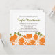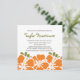 Estes chás de panela alaranjados bonito e modernos do hibiscus em matiz alaranjadas, amarelas e verdes são perfeitos para um Hawaiian, uma praia ou um chá de panela temático ou um chá de casamento do luau tropical. A parte dianteira e a parte traseira deste convite podem ser personalizadas com seu próprio fraseio. © Chrissy H. Estúdio dos trabalhos de arte, LLC. Todos os direitos reservados.