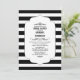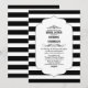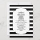 Chá de panela de listras brancas e pretas com design de tipografia clássica e elegante.