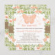 Este o pêssego bonito e os chás de panela hued corais da borboleta com um fundo floral verde mossy e um design costurado serapilheira do olhar da fita com um pêssego pálido subtil rodam e o design dos corações é perfeito para um chá de casamento temático rústico ou do vintage de jardim do partido para que a noiva seja. A parte dianteira deste convite pode ser personalizada com a inicial ou o monograma da noiva de cora. A parte traseira deste encantamento convida pode ser personalizada com o o nome do evento. Trabalhos de arte e © Chrissy H. Estúdio do design, LLC. Todos os direitos reservados.
