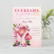 Chás de panela vermelhos e coquetéis modernos e cupcakes. coquetel de aquarela impressionante e ilustração de cupcake para este convite chic.