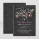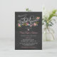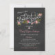 Convites florais do chá de casamento da grinalda do estilo moderno do quadro - chá de panela floral do jardim. Rosas cor-de-rosa, margaridas, e flores abstratas com coral, azul, fúcsia e acentos da verde azeitona com tipografia extravagante do redemoinho no quadro-negro das cinzas de ardósia. Apenas adicione o nome Noiva-à-Estar, da data, de tempo e de detalhes, e personalize a informação nupcial do registro. O clique personaliza-a para mudar o tamanho, denomina-a, ou disposição e criar-la seus próprios convites disponíveis do chá de casamento. © botânico 2013 do tema do casamento