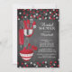 O estoque moderno o chá de panela da cozinha que caracteriza um pino do rolo, recipiente, espátula, cortador da pizza, whisk, o descascador vegetal e as colheres de medição ajustados em um fundo contemporâneo do quadro com confetes vermelhos & pretos das bolinhas. Visite nossa loja para ver este convite em uma variedade de convites populares do chá de casamento.