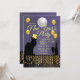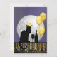 Uma silhueta do gato preto de Théophile Steinlen para o clube Le Chat Noir num cenário moderno para Anos novos que apresentam um gato com um chapéu de ouro com champanhe, balões de ouro e uma bola de disco."
