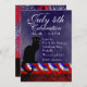 Uma silhueta do gato negro de Théophile Steinlen para o clube Le Chat Noir num cenário moderno para o dia 4 de julho. O gato está vestindo um chapéu tricorne. A Estátua da Liberdade está no fundo junto com fogos de artifício vermelhos, brancos e azuis.