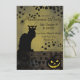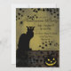Uma silhueta do gato preto de Théophile Steinlen para o clube do Le Chat Noir num cenário moderno com uma lua amarela brilhante, muro de cinza com maria, aranha, morcego e um jack-o-lanterno.