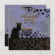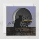 Uma silhueta do gato preto de Théophile Steinlen para o clube do Noir Le Chat em um cenário moderno para Chanucá/Chanukah apresentando o gato negro com uma menorah acesa e uma lua em declínio.