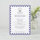 Este encantador convite dá um tom doce e sofisticado para o seu chá de fraldas. Ele apresenta um quadro clássico de gingham azul marinho em volta de um simples ursinho de pelúcia desenhado à mão. O design é uma combinação perfeita de estilos pré-filmados e clássicos, oferecendo uma maneira mínima, mas sincera, de dar as boas vindas ao seu "filhote". As linhas limpas e as imagens gentis criam um aspecto eterno, fazer-o como um guardião memorável para uma celebração tão especial. É uma design doce e subestimada para um chá de fraldas clássico.